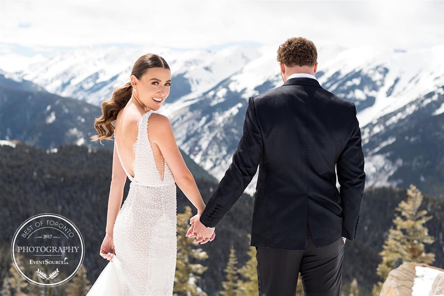 “Photographed at 11,212 feet above sea level, at the very top of Aspen mountain, this wedding was by far one of the most beautiful and epic locations we’ve ever had the pleasure of photographing! A gorgeous couple, sunshine, spectacular vistas, and fresh mountain air; it doesn’t get any better!”