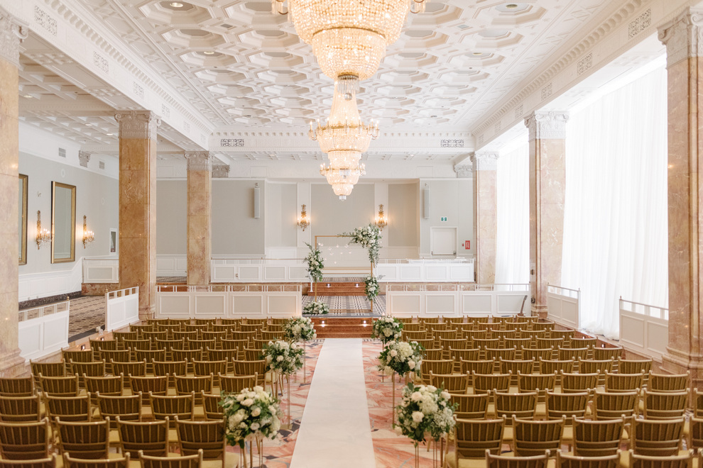 Alice and Tony tied the knot in the majestic Imperial Room which perfectly embodied their desire for a minimalistic yet elegant setting. The altar was adorned with ivory blossoms that reflected the purity of their love, while the aisle, lined with delicate petals, led them to their forever. The intimacy of the indoor setting allowed their emotions to take center stage, creating a ceremony that was as heartfelt as it was beautiful.
