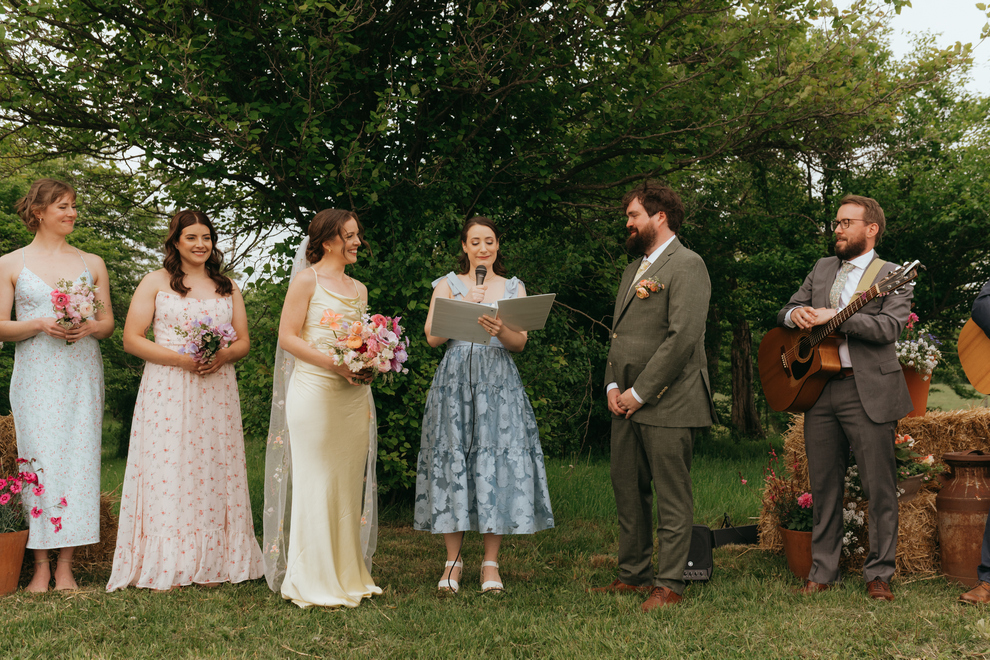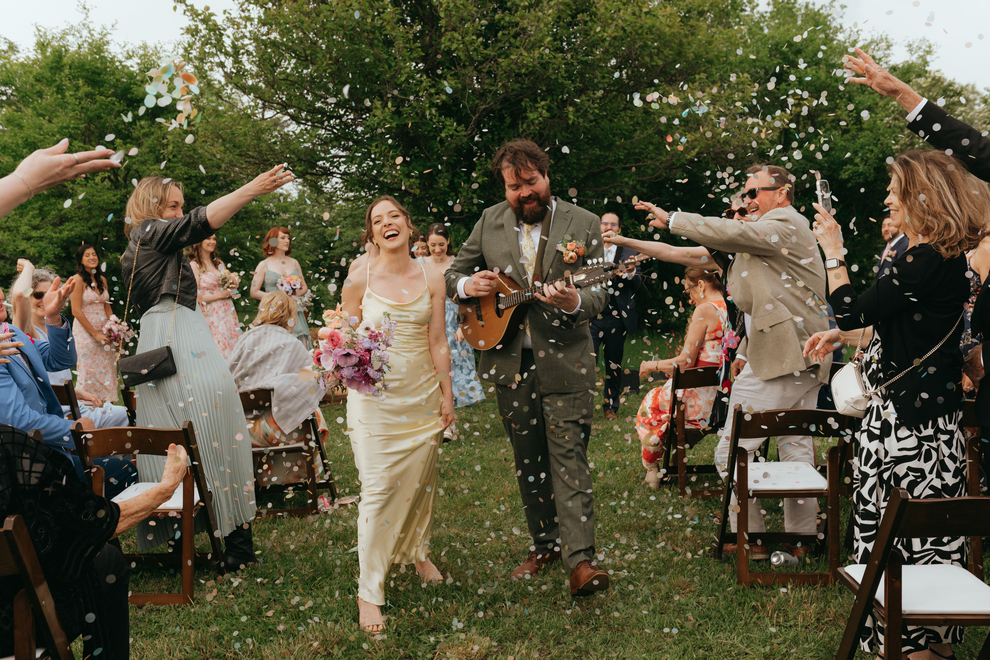 Behind the scenes, Confetti and Co. brought the couple’s vision to life, blending thoughtful details with a relaxed, down-to-earth atmosphere. The florals by Field Notes tied everything together with wild, organic arrangements that echoed the natural beauty around them. Rentals from All Celebrations helped transform the space into a warm and welcoming setting, perfect for both the ceremony and the festivities that followed.