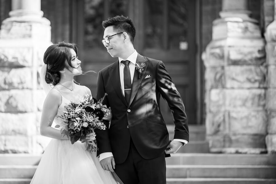 With its exposed brick walls, floor-to-ceiling windows and clean lines, The Royal Conservatory proved the perfect choice for Wei and Jim’s modern, whimsical wedding. Planned by Carmen and her talented team at Devoted To You, with a few DIY details sprinkled in, this chic wedding is sure to make your heart melt. Lucky for us, Ikonica was on hand to beautifully capture all of the day’s special moments.