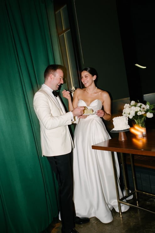 DJ Floh Back Productions kept the playlist flowing through the night. After their first dance, the couple cut into their classic white cake, fed each other a bite, and toasted with wine and cocktails in hand. It was an evening full of love, good food, laughter, and a vibe that felt completely theirs.