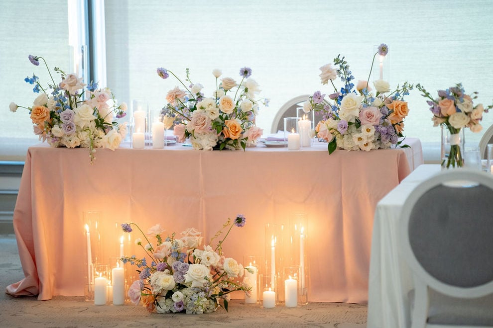 With expert coordination from Captured and Coordinated, the couple’s vision came together effortlessly. Lush, artful arrangements by La Belle Fleur Floral & Design added pops of color and softness to the space, while Nayos Event Rentals curated chic and cozy pieces that gave the setup a polished, welcoming vibe. Drapes and backdrops by Annie Lane Events and Decor created lovely focal points that elevated both ceremony and reception settings.