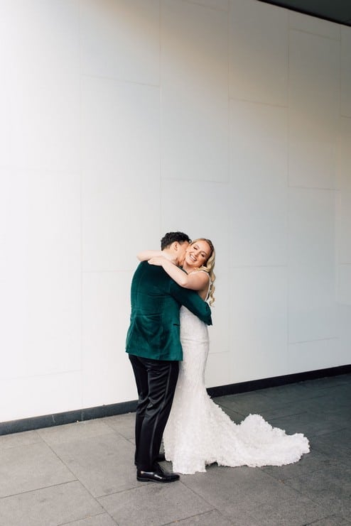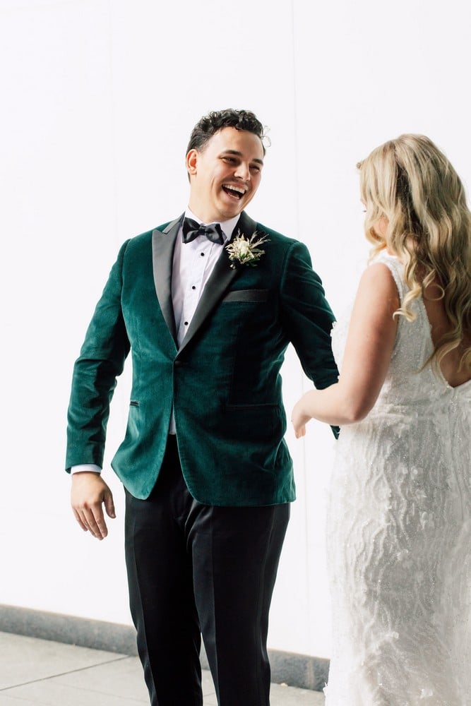 The couple shared an adorable first look before their stylish and love-filled photo session.