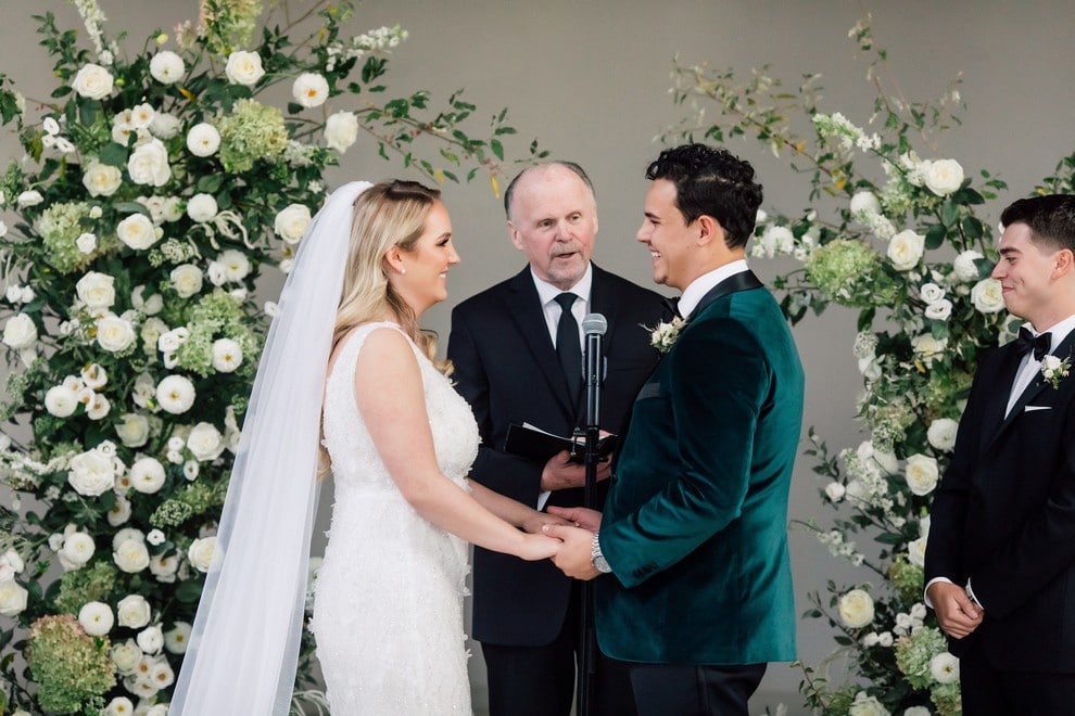 The couple made it official in a simple-yet-stunning ceremony that was beautifully accented with romantic candles and a lush white floral arch.