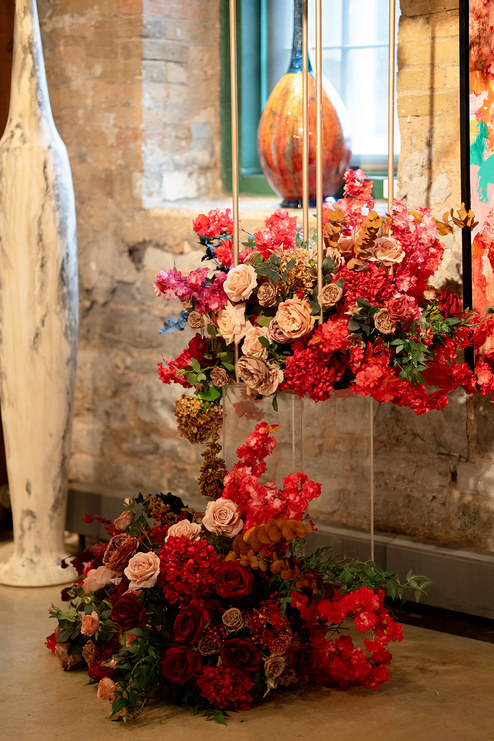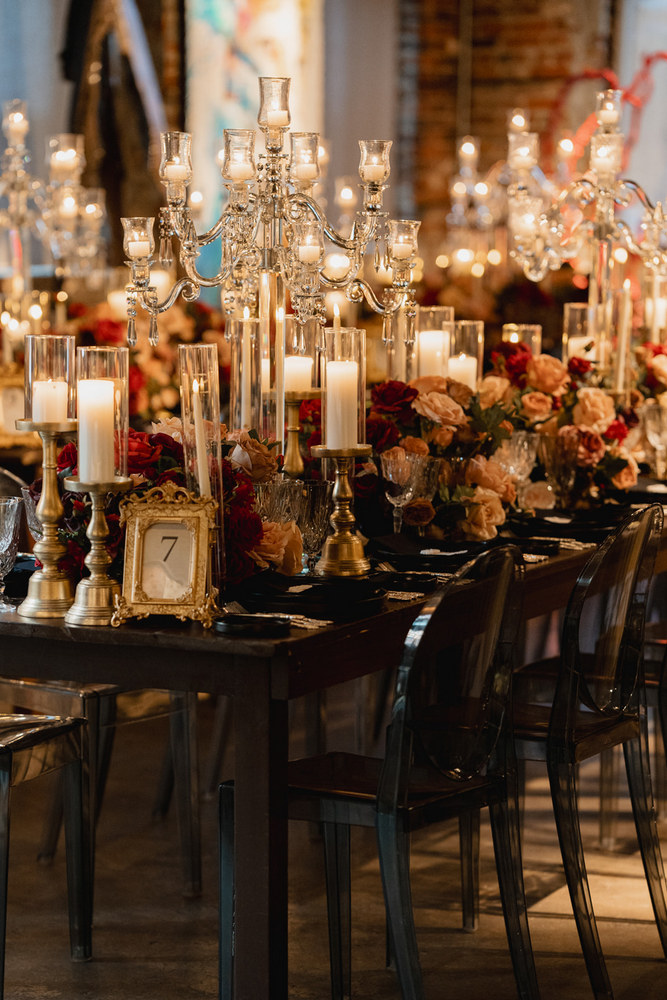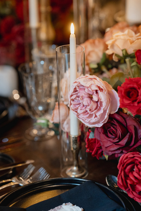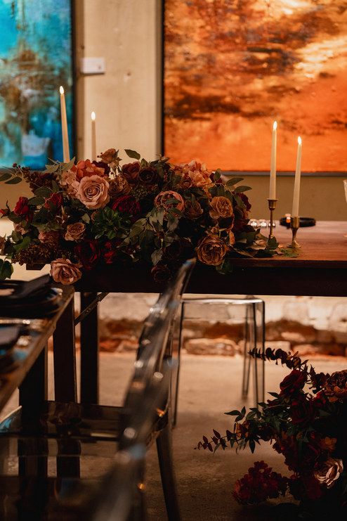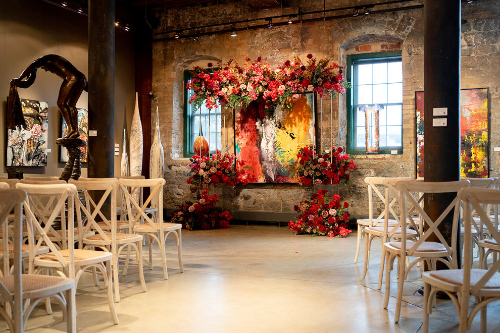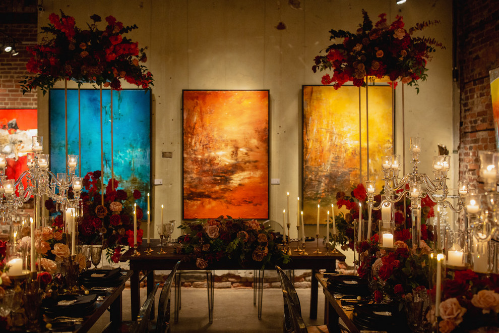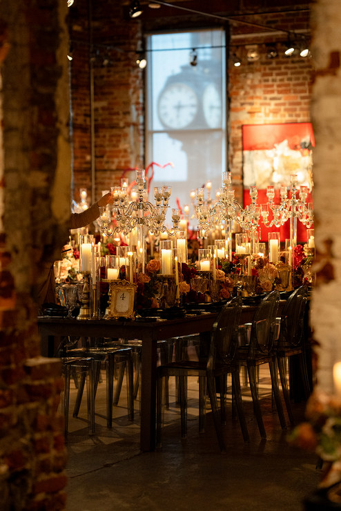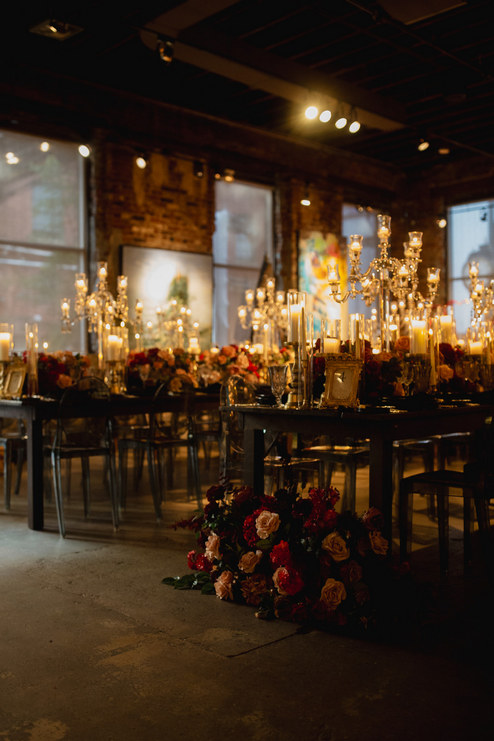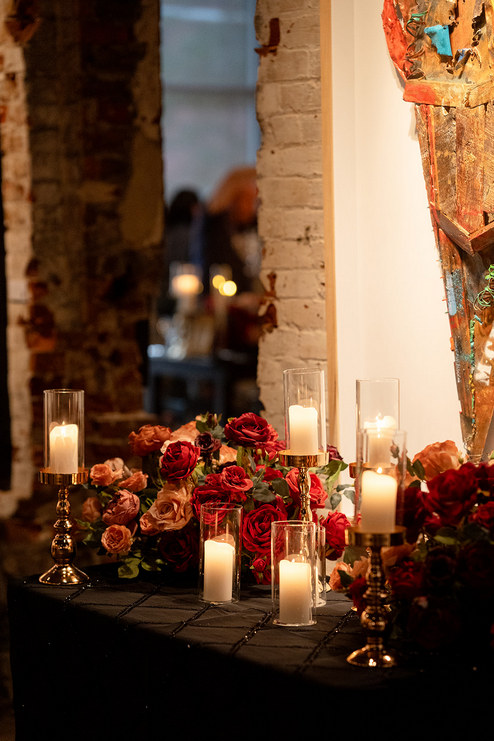 After the “I do’s,” the gallery transformed into a romantic dinner party setting. Thanks to Destiny Weddings and Adrienne's Flowers the reception had tables decked out with low arrangements of flowers, candles that gave everything a gentle glow, and cozy vibes that invited guests to settle in and celebrate. The whole setup felt effortless; from the elegant tablescape to the relaxed mood that carried through the night.