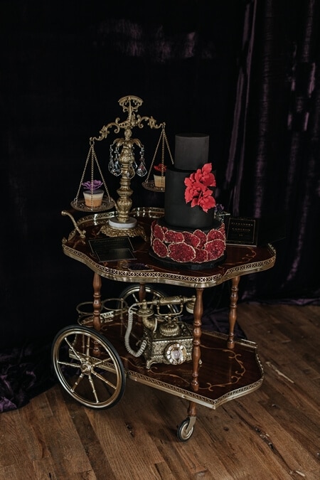 Gothic glam perfectly sums up the backdrop to this stunning shoot.