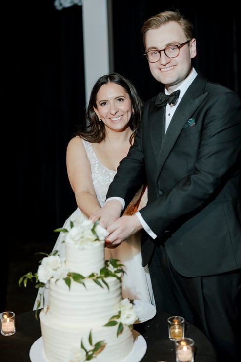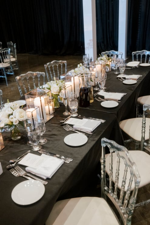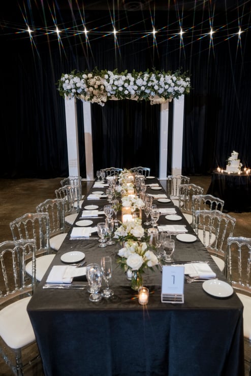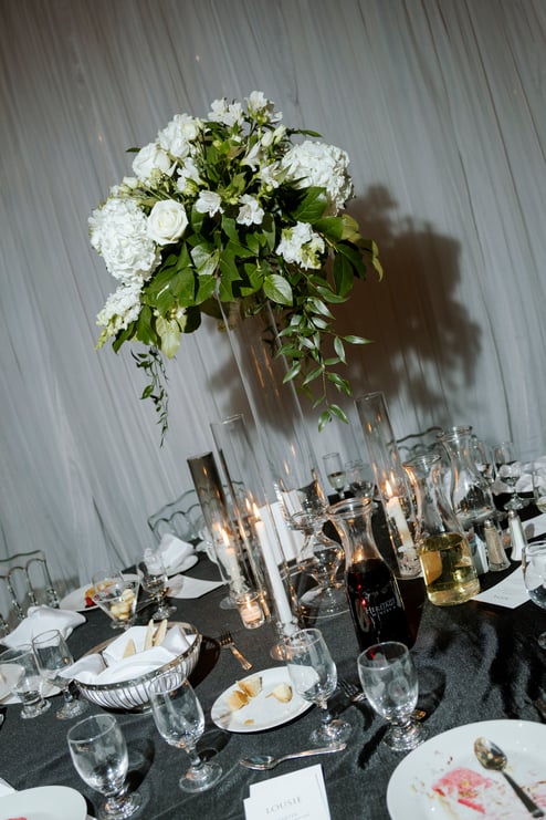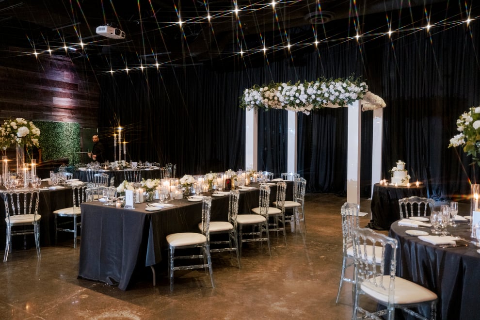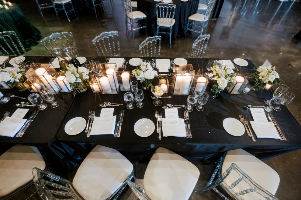 The ceremony space bloomed with artful arrangements by Toronto Florist Shop, their lush florals adding a romantic touch to the modern setting. Alana looked radiant, her flawless makeup by Taylor Downes paired with a sleek bridal hairstyle by Xiao Wen Chen, while her bridal party’s polished looks came courtesy of Terry-Alix Salon.