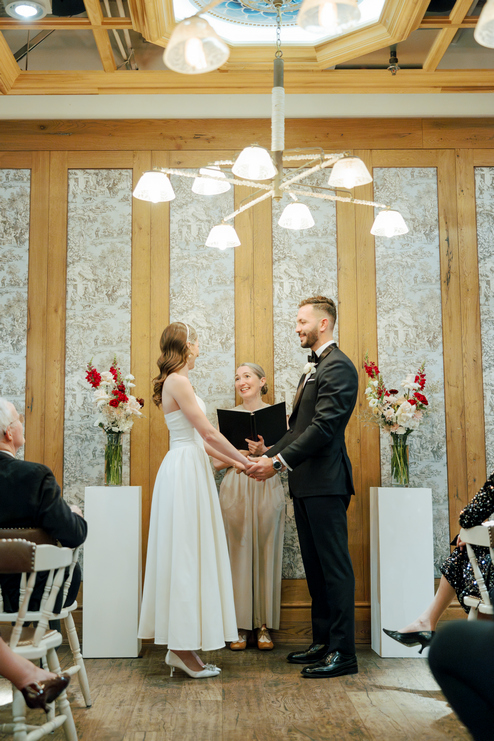 Led by Your Wedding Officiant, the exchange of vows felt deeply personal, as if the whole room held its breath for that one perfect moment. Laughter and happy tears flowed as family and friends watched Jennifer and Nedal promise forever.