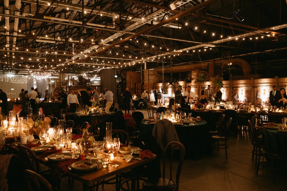 The reception was nothing short of captivating. The décor breathed life into the venue, seamlessly blending rustic elegance with earthy-chic charm. Food Dudes wowed the guests with a sumptuous feast, while YOONA's Kitchen delighted everyone with a wedding cake that catered to special dietary needs, ensuring all could indulge. The sweets table and the cheerful presence of an ice cream truck kept the energy high throughout the night.  Live melodies from Good People Only set the perfect mood, and as the evening advanced, Dougie Boom took over, transforming the venue into a chic, moody city bar. The industrial-inspired lighting cast a unique spell, infusing the room with a sense of celebration and nostalgia.