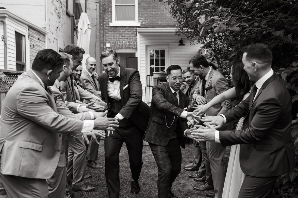 Captured through the talented lens of Shae Robbins from Shae and Evan Photography, Jensen and Matt’s wedding day blossoms beautifully amidst the natural allure of Evergreen Brick Works. This perfect backdrop was brought to life by the expert planning of Bisous Events. And, of course, we can’t overlook the stylish grooms who graced this special day in custom suits crafted by Empire Customs.