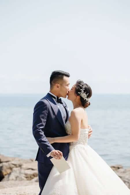 Fleur Weddings did an incredible job with integrating all the details of the couple’s wish list at their elegant Burlington wedding venue. Organic elements — think shades of green and wooden accents — played up gorgeously with refined details, including crisp and clean tablescapes with gold trimmings and bright florals. Playful particulars, like pineapples and elephants, added a joyful and personal touch to the festivities. Later, guests were treated to a fantastic and flavorful geometric cake design by Dolce Vita Cakes before sending off the couple with a smartphone “light show” at night’s end.
