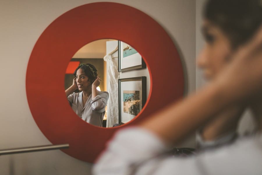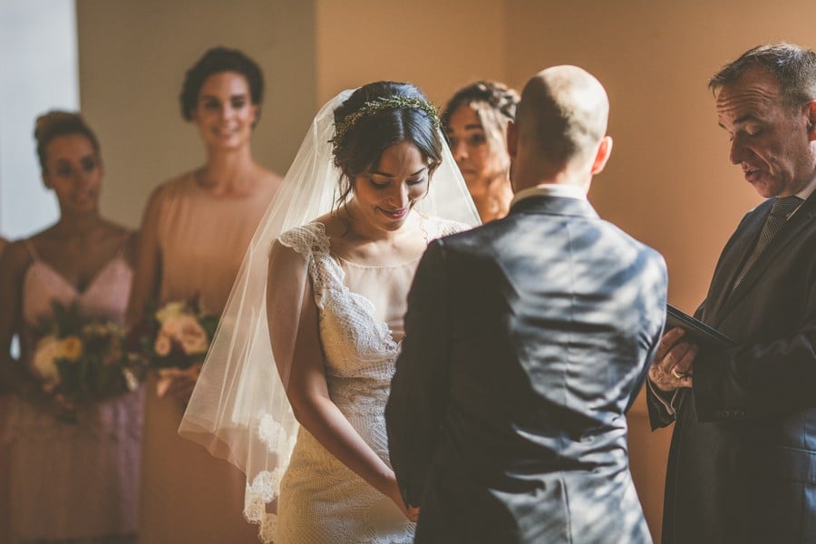 The couple’s intimate reception is infused with vintage style and tons of love. Dainty place settings are accented with delicate candles in vintage glass candle holders and gorgeous flower arrangements by The Rose Mint. A personal photo shoot area with Instax cameras for guests was a charming addition, and one which left guests with a lasting memory of the enchanting evening.