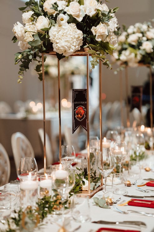 The day began with sweet, quiet moments as Vivian got ready with the help of EMQ Studios for hair and Faces by Toru for makeup, while her bridesmaids made sure every detail from her veil to her dress was flawless. The ceremony, officiated by Krystal Bond, Bridging the Gap Ministries, was heartfelt and personal, setting the perfect tone for the celebrations ahead. At the reception, guests were sorted into Hogwarts Houses and earned points through lively games. As the evening unfolded, the hall glowed red when Gryffindor claimed victory, a moment that had everyone cheering. Elegant florals by Ichigo Ichie Floral Studio, a stunning cake by Divya Rao Pastry, and the music of Malig Entertainment made the evening unforgettable. Every magical detail reflected Vivian and Gordon’s love story in the most enchanting way.