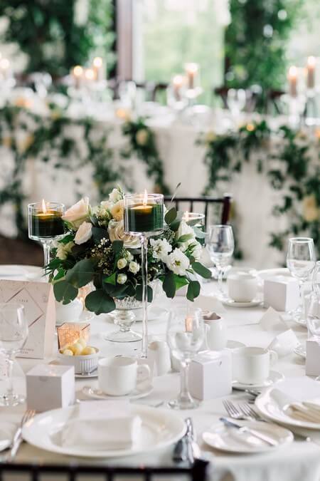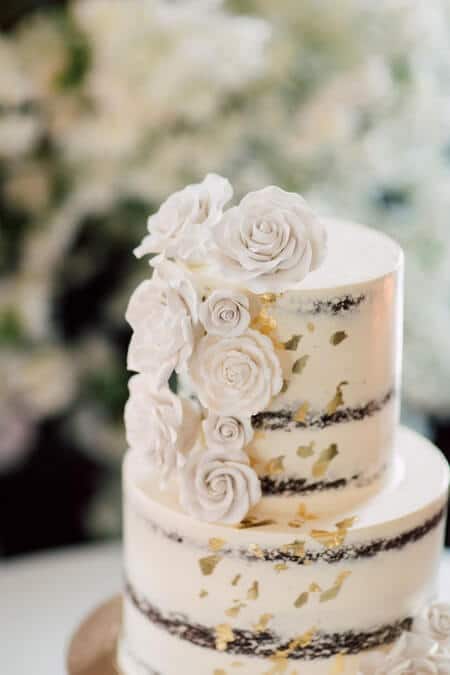 The couple’s reception defined sophisticated and soft romance in every way. Dozens of candles, fantastic florals and vintage-like decor from Sara Baig Designs created the most dreamy setting, while tall centerpieces and the lush green backdrop at the head table provided the fresh garden vibes. Metallic elements, including the dance floor from DFD Event Solutions, added the right amount of modern chic to night. The delectable and floral wedding cake from Cake Creations by Michelle capped off the night on the sweetest note.