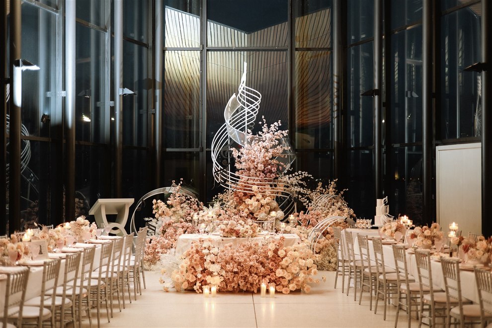With the expertise of Destiny Weddings, Sophie and Yang’s music-inspired vision came to life perfectly. Amor Wedding decorated the place beautifully, incorporating floral arrangements and fun, music-themed touches like sheet music-inspired table settings and vinyl record signage that added character to the space. Sophie’s bridal look, created by Louminous Makeup, was timeless and radiant, perfectly complementing the romantic atmosphere of the day.