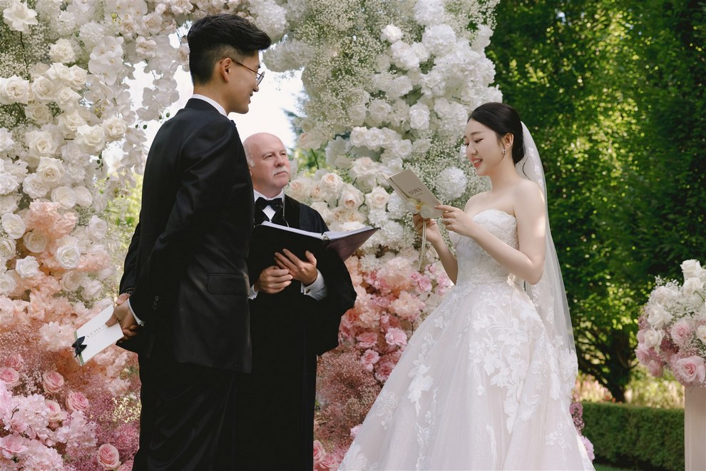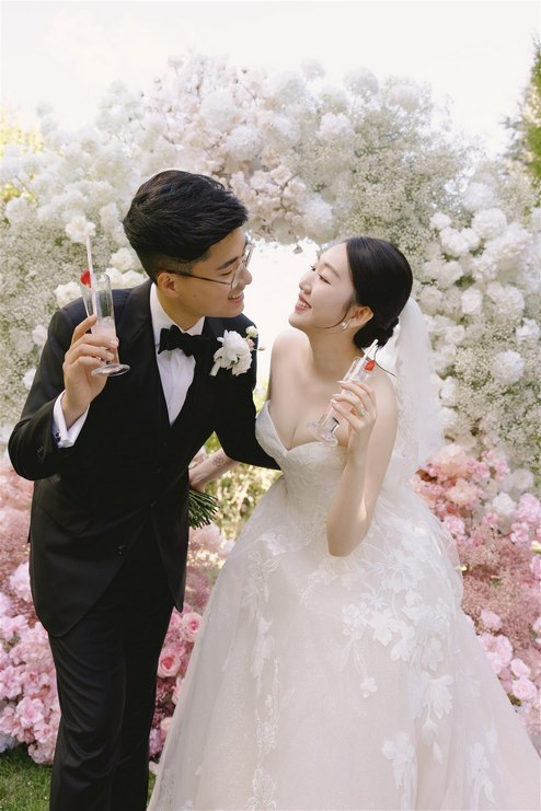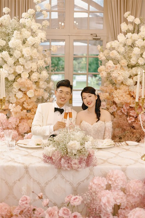 Planned seamlessly by Destiny Weddings, the celebration unfolded with intention and ease. Guests arrived to a ceremony framed by lush floral arrangements from Amor Wedding, where soft blooms and layered greenery created a setting that felt refined yet inviting. As Cherry made her entrance, the gentle melodies of Denise Fung, Harpist floated through the air, adding a dreamy soundtrack that made the moment even more moving.