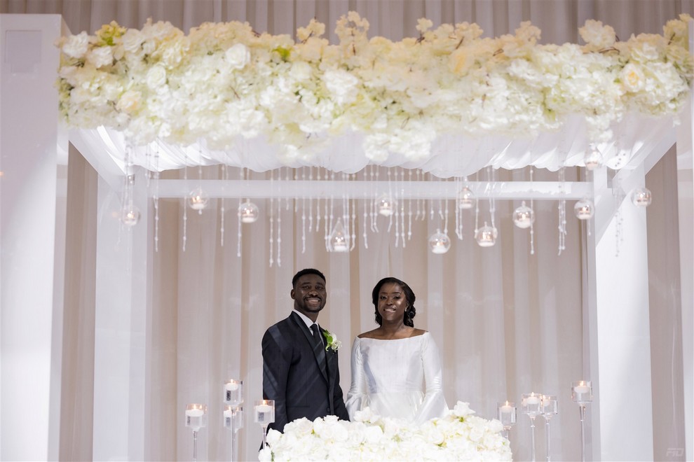 The newlyweds continued their celebration at The Royalton, where the reception was held. The venue was elegantly decorated with flowers and stunning centerpieces that perfectly complemented the couple’s classic style. Guests were treated to a delicious meal prepared by Chrispy African Market, and an exquisite wedding cake by Cakes by Mavis. The night was filled with laughter, dancing, and pure joy as DJ Fresh Canada kept the party going late into the night.