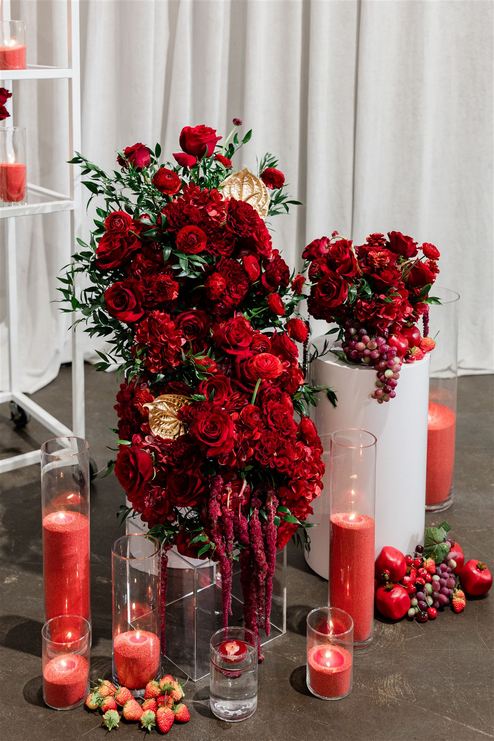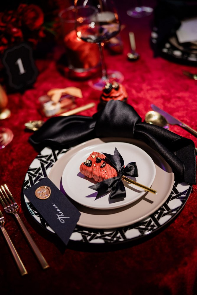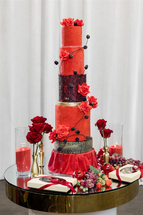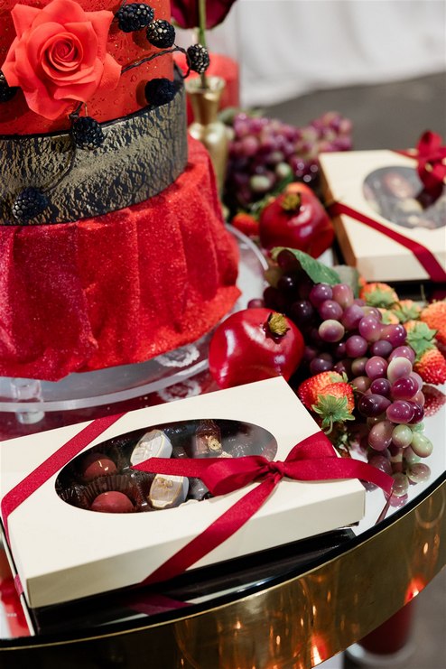 The reception was its own little world of luxury. Lumiiluxe filled the room with the softest candlelit glow, Bubbly Walls kept the champagne tower sparkling, and Party Propz delivered a dramatic backdrop and gleaming candelabras. Eventat Canada and Around the Table tied the whole space together with thoughtfully chosen rentals and linens, while Paper Palette added stylish stationery details. The sweets table was a full-on moment, thanks to Bird and Berry, Sprinkled by M, Chocolate Zone by Ilona, and Eventat Canada. Guests were treated to an aerial performance by Eman Hillawi from Dancing in Circles, and Vow Films made sure every dazzling detail lives on long after the last dance.