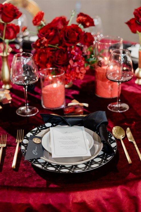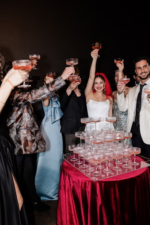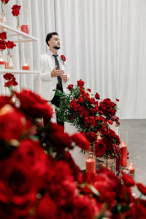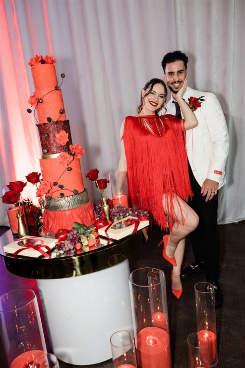 The ceremony unfolded beneath dreamy blooms from Dynasty Events and Florals, setting the tone for a day packed with style. Isabelle didn’t just have one bridal look – she had a whole fashion storyline. She started in a stunning Missia Bridal gown, switched into a chic white mini by Valencienne Bridal Design and later surprised everyone with a show-stopping red fringe dress by Narces. Blair Nadeau Bridal Adornments added the perfect finishing touches, and Look Devine Beauty kept her glowing through every outfit change. The Aisle curated polished looks for the bridal party and guests, with men suited up by Gotstyle and women dressed in elegant pieces from Missia Bridal and Narces.