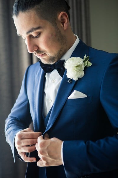 The newlyweds’ reception is the epitome of a classically stylish affair. The traditional vibe of the wood paneled golf club, along with the beautiful bouquet of bright blooms against a neutral palette, made for an elegant yet modern celebration. The stunning, multi-tiered floral cake designed by CocoaFancy sweetly capped off the night.