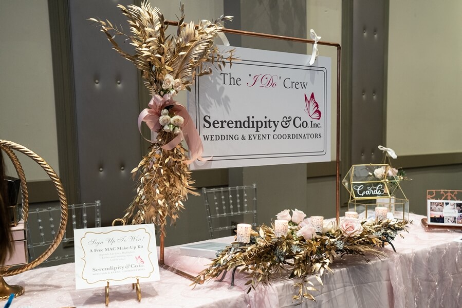 There were a variety of wedding vendors stationed throughout the ballroom to help couples better imagine their wedding day: bb Blanc Audiovisual, Just Temptations, Enduring Promises, Serendipity & Co., and Axe Media Group, to name a few.