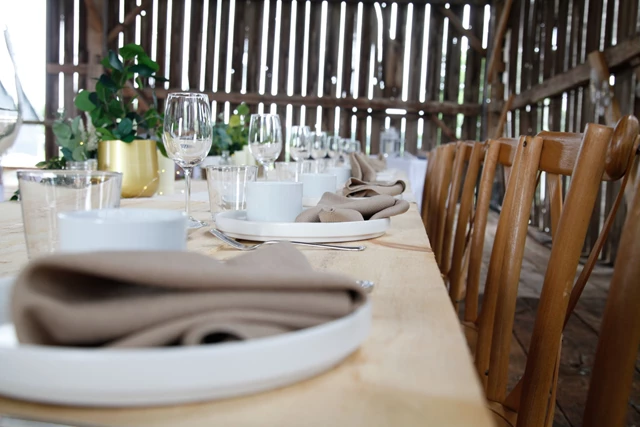 All packages include access to one or both barns, outdoor ceremony areas, cocktail spaces, lawn games, farm animals, and curated décor elements like linen runners, vintage vases, mason jars, fairy lights, and battery-operated candles. Couples can bring their own vendors or request recommendations from our trusted list of photographers, planners (including in-house coordination), and caterers. Weddings with 50+ guests also have access to the first floor of the farmhouse for getting ready. Overnight packages have access to the full farmhouse.